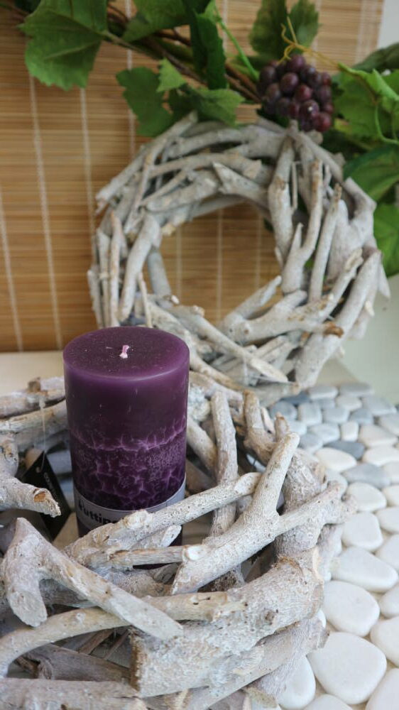 Ajopuusta valmistettu kaunis kranssi.